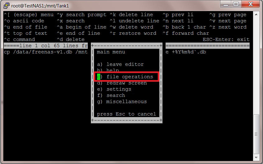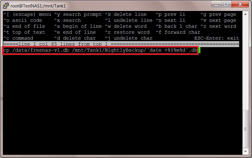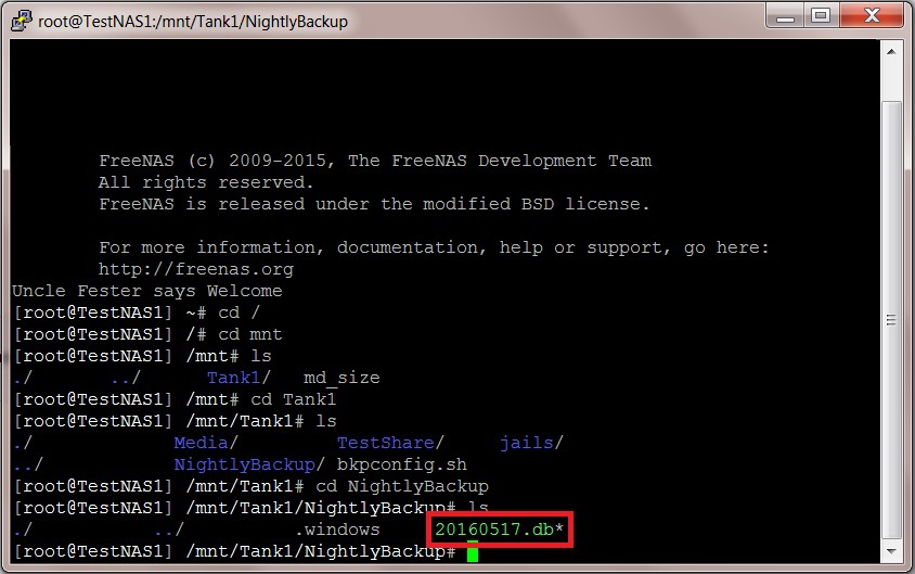 cp /data/freenas-v1.db /mnt/Tank1/NightlyBackup/`date +%Y%m%d`.db