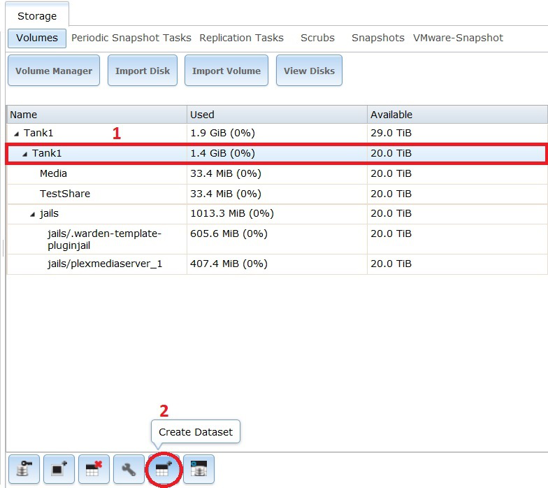 The first thing to do is to create a dataset within which we can store the nightly backup of the FreeNAS configuration file. This will keep things neat and tidy.