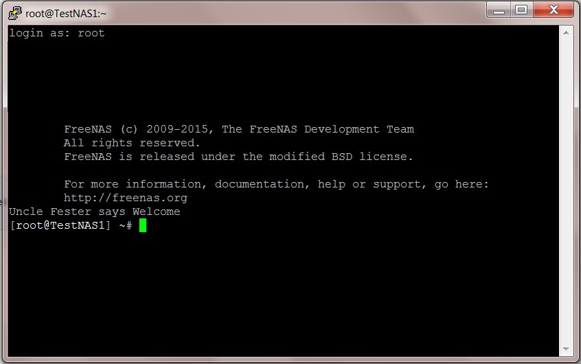 Open up an SSH session in PuTTY and log in as the root user. You should see a screen something like this.