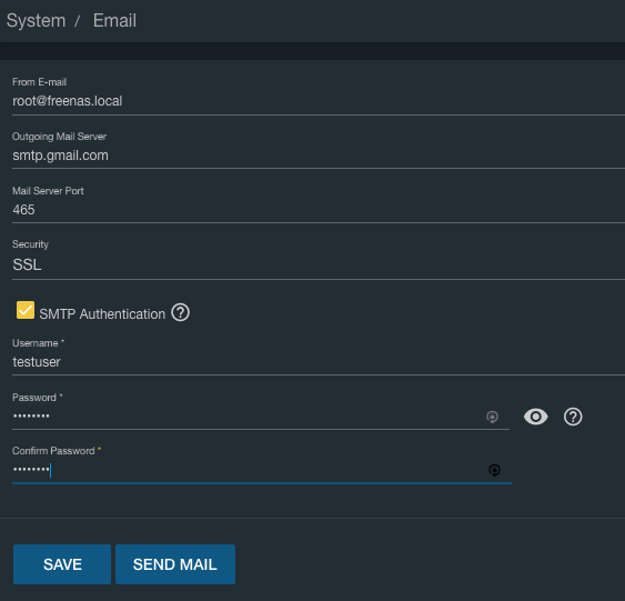 Now go back to the “System” → “Email” page in FreeNAS and click on the “Send Test Mail:” button (9). If all goes well you should receive an email from your server momentarily.
