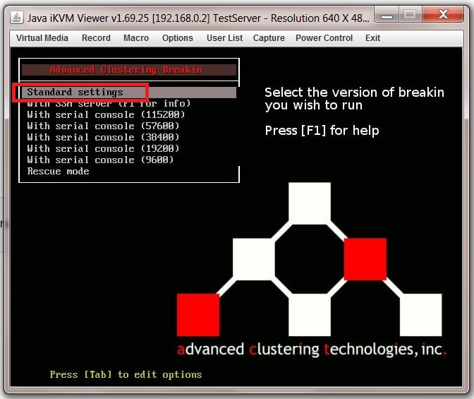 Follow the instructions in Writing a USB Stick to write the Breakin image file to a USB Stick. You can alternatively burn it to a CD-ROM, or mount the file via IPMI.