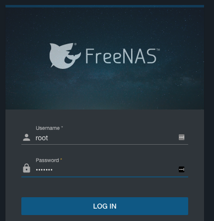 During installation, you had the ability to set a root password. If you entered a strong password at that time, you do not need to reset it now. If you entered no password, or a weak password, you should change it to a secure password. To do this, open your web browser and type in the IP address of the FreeNAS web GUI that you noted down earlier.