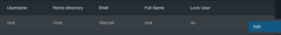 Then click the three vertical dots to the right of the root user, and select Edit from the pop-up menu: