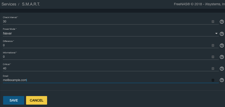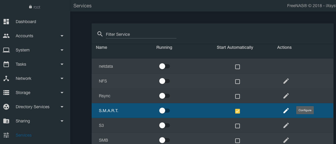 Click “Services” in the left column, scroll down to find “S.M.A.R.T.”, and click the pencil icon to the right.