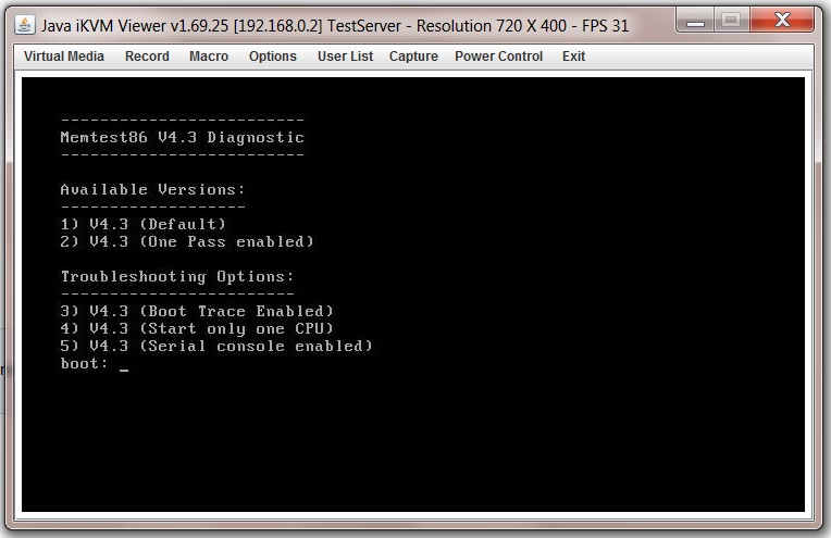 Power up and the server should boot into the MemTest86+ start up screen as shown.