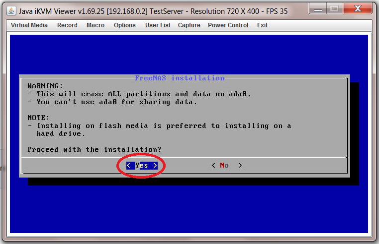 Insert the bootable FreeNAS 9.10 installation USB stick and switch on the server.