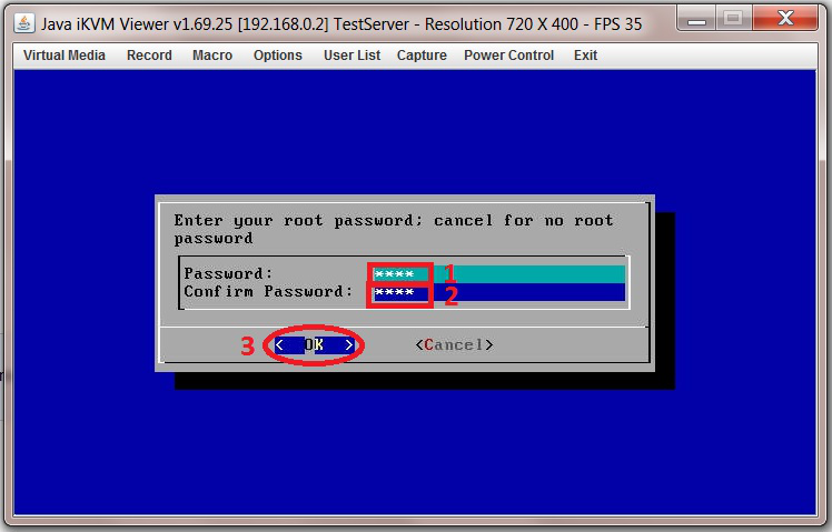 The next screen will ask you to create a login password for accessing FreeNAS. This is the final installation so a strong password (1) is recommended (you can change it later in the FreeNAS web GUI), just make sure you remember it.