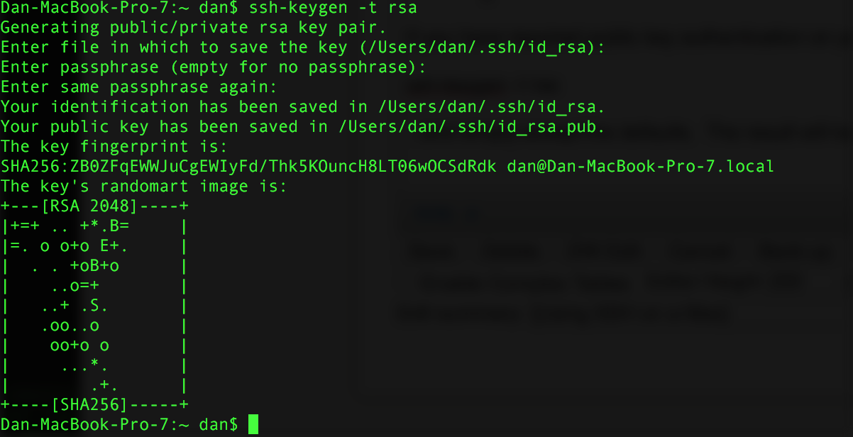 The system will prompt you for a passphrase; this is optional. If you enter a passphrase, you will need to enter it every time you use this keypair (i.e., every time you use ssh). If you leave the passphrase blank, you won't need to enter it when you connect to a remote server, but neither will a thief who manages to steal your computer. You'll now need to view your public key, to enter it in the FreeNAS configuration. To do that, type
