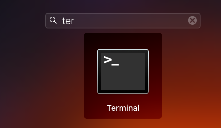 Begin typing “Terminal” into the search bar at the top, until you see the Terminal icon below: